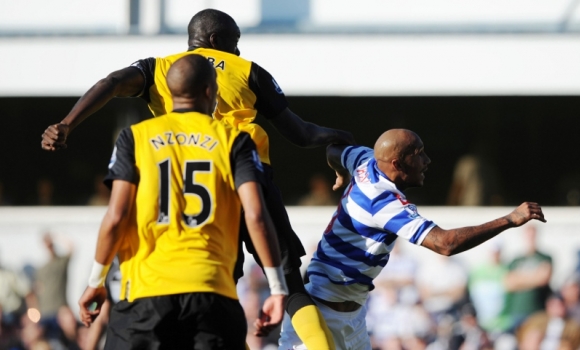 QPR 1 Blackburn 1, Saturday October 15, 2011, Premier League Fresh from a 6-0 trouncing at Fulham QPR played it steady and cautious against fellow strugglers Blackburn Rovers at Loftus Road in their first season back in the Premier League. Heidar Helguson was restored to the starting line up and rewarded manager Neil Warnock with a goal, although his chipped effort after a quarter of an hour that dipped into the far corner looked suspiciously like a cross. But Rangers failed to cope with the aerial threat posed by Chris Samba all afternoon and barely ten minutes after falling behind Rovers were level when he towered over Fitz Hall to head home a well flighted free kick. Both sides seemed satisfied with their draw. QPR: Kenny 7, Young 7, Ferdinand 6, Hall 5, Traore 6, Derry 5, Faurlin 6, Wright-Phillips 6 (Smith 83, -), Barton 6, Mackie 6 (Taarabt 64, 5), Helguson 7 Subs Not Used: Murphy, Orr, Bothroyd, Buzsaky, Puncheon Booked: Hall (foul), Wright-Phillips (foul), Traore (foul) Goals: Helguson 16 (unassisted) Blackburn: Robinson 6, Salgado 6, Samba 8, Dann 6, Givet 6, Lowe 7, Petrovic 6, Nzonzi 7, Olsson 7, Hoilett 7, Roberts 5 (Goodwillie 67, 4) Subs Not Used: Bunn, Formica, Rochina, Yakubu, Vukcevic, Hanley Booked: Nzonzi (foul), Lowe (foul) Goals: Samba 24 (assisted Lowe)